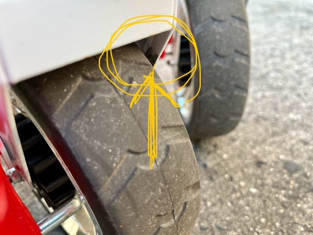 タイヤを支える軸の部分が曲がり、走行時に左右にブレるようになりました。