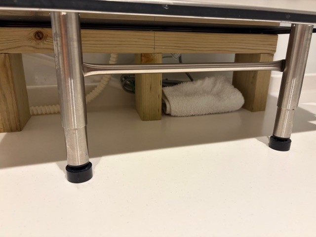 我が家のキッチンカウンターは高さが25cmなので、何もせず置いたら吊戸棚を支障する状態でした。