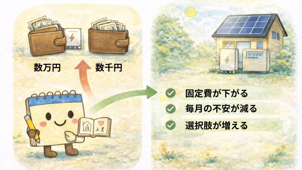 売電でプラスを出すより、電気代をゼロに近づけること。これが一番大きかったです。